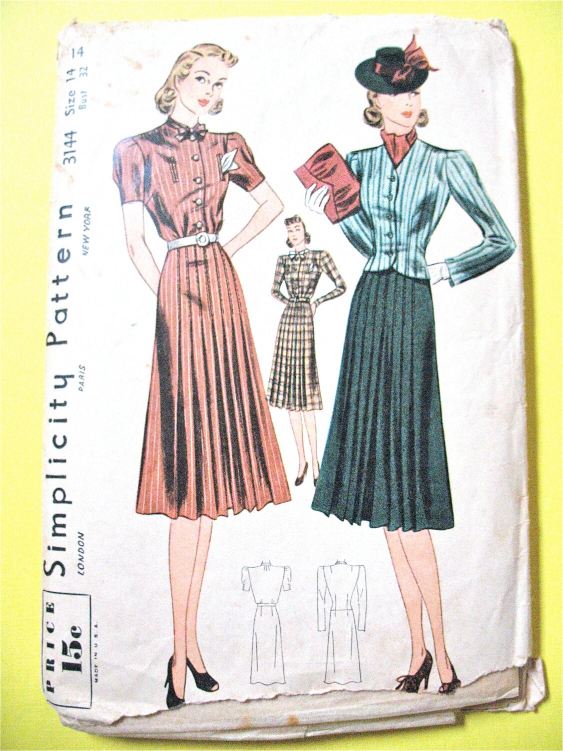 1930s Simplicity 3144 Misses Dress And Fitted Collarless Etsy